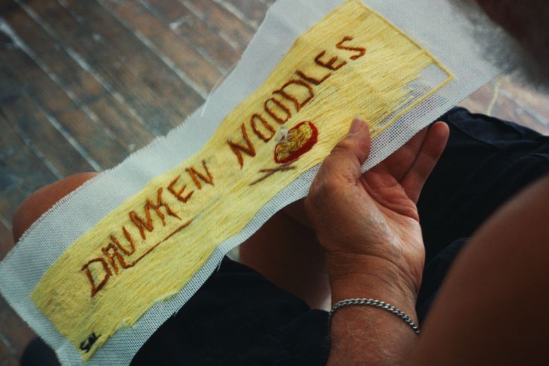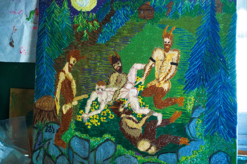 本作の着想源となったのは、アメリカの刺繍アーティスト、サル・サランドラの作品。伝統的なニードルポイント技法を用いながら、あえて露骨でユーモラスな性的モチーフを描く彼の刺繍は、色彩豊かで遊び心に満ちている。その自由な感性は本作の随所に息づき、映像世界と静かに響き合う。