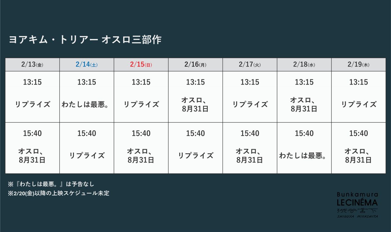 初期傑作群であり、都市に生きる若者の愛と孤独を描いた「オスロ三部作」として知られる『リプライズ』『オスロ、8月31日』『わたしは最悪。』を一挙上映!