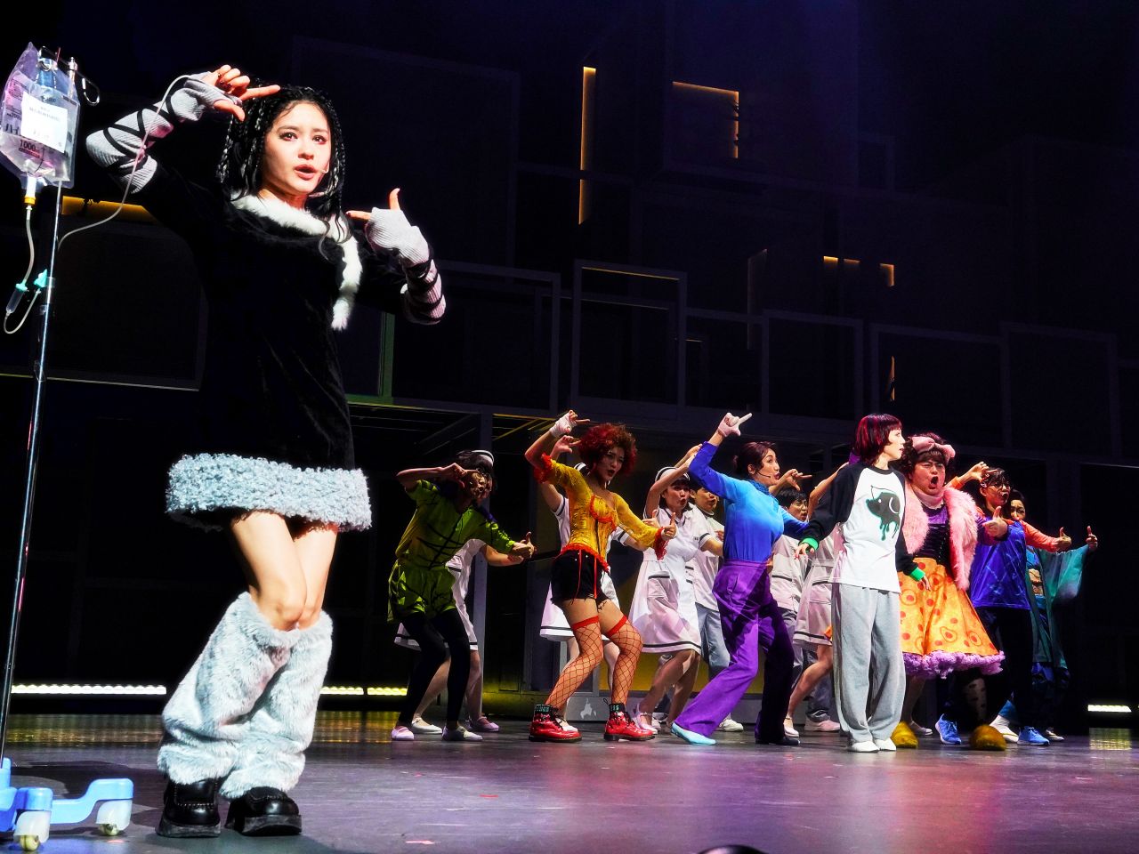 主人公の明日香を演じるのは咲妃みゆ。彼女の全身全霊で懸命な姿が観客を物語へと誘導してくれる。明日香のパートナーで人気放送作家の焼畑鉄雄役は松下優也。朗々とした歌声が感動と笑いを同時に与えてくれるとは! 閉鎖病棟の患者のひとりでミステリアスな空気をまとうミキを演じる昆夏美は、繊細かつ力強い表現で作品を支える。松尾自らが監督した映画版からの続投で厳格なナース江口を務めるりょうは、映画とはまた違う味わい。パンチがありながら、人情も覗かせる。ナース山岸を演じる桜井玲香は役のキャラクター同様、一服の清涼剤のよう。涼やかな歌声が心地良い。