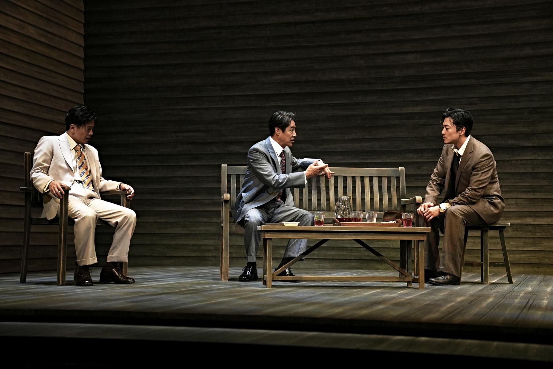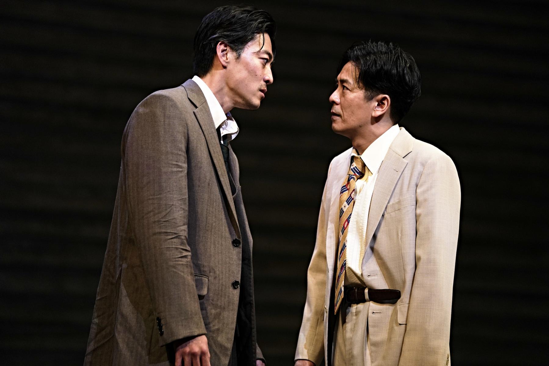 堤真一演じるジョー・ケラーは、罪悪感に苛まれてきたというよりも、本心から自分の正当性を疑わずに歳を重ねた父親に見える。自分がしたことは家族を守るためだったのだと、自分を欺いて生きてきた。人当たりがよく、近所の少年にも好かれ、家族を愛する「良き父親」像に真実味があるのは、堤自身の資質にもよるだろう。罪を犯す人間が普段から独善的な人間だとは限らない。何も知らずにそんな父親を尊敬し、理解し合う森田剛扮する長男クリスとの理想的な親子関係は、「裏庭」の外を見ようとしない父と、外にも世界があることに目を開いた息子との間で、決定的な亀裂が生じる。信じていた父の裏切りを知ったクリスの慟哭、知ろうとしなかった自分に対する怒りは、演じる森田の激情と相まって劇場中の空気を震わせる。