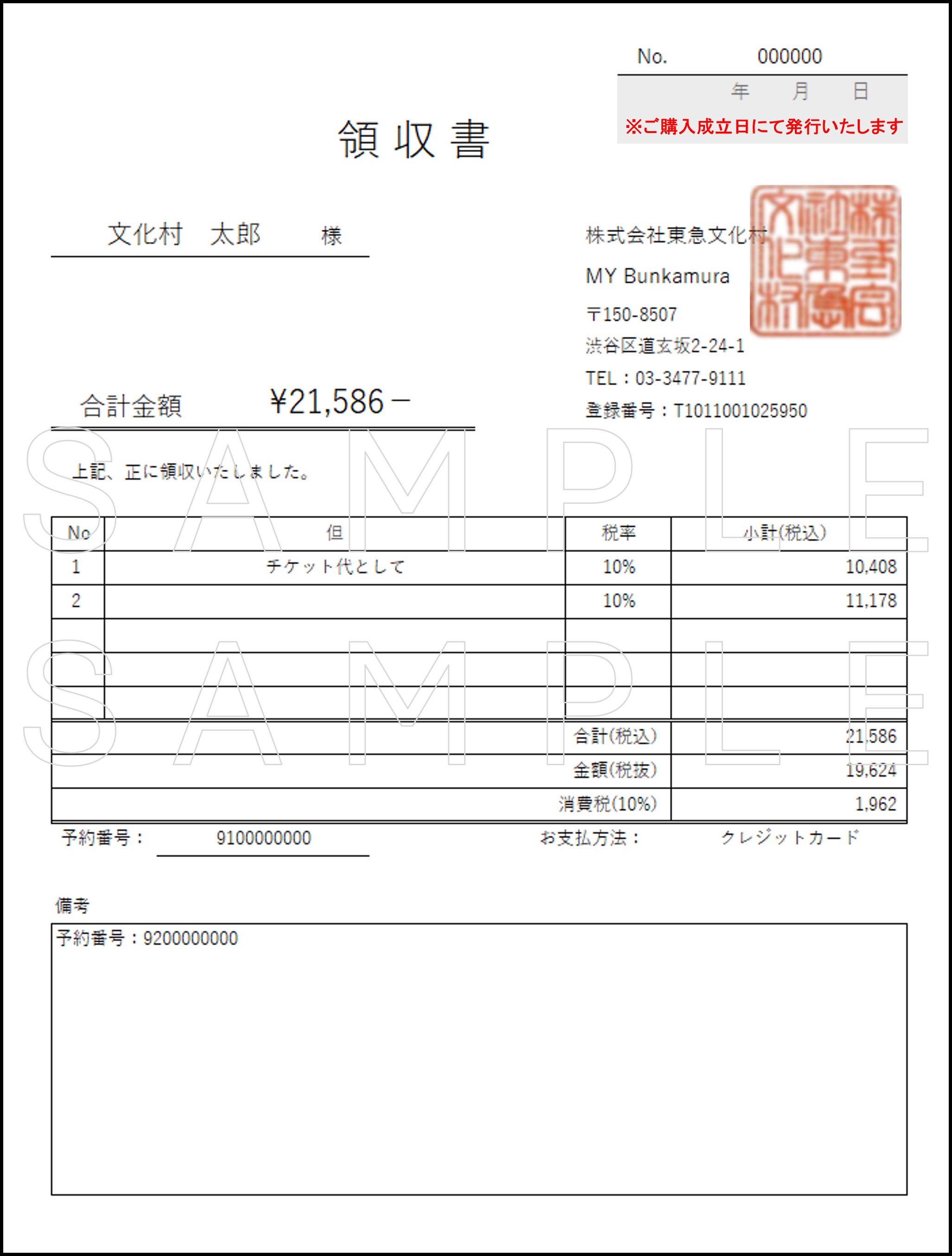 MY Bunkamuraで購入したチケットの領収書を発行してほしい