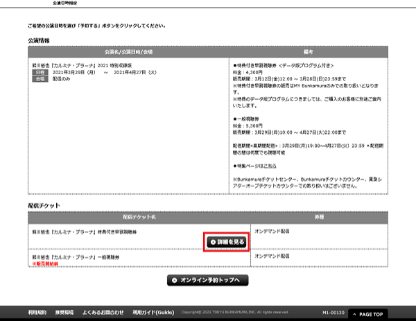 ①購入ページより希望するチケットの [詳細を見る] をクリックしてください。