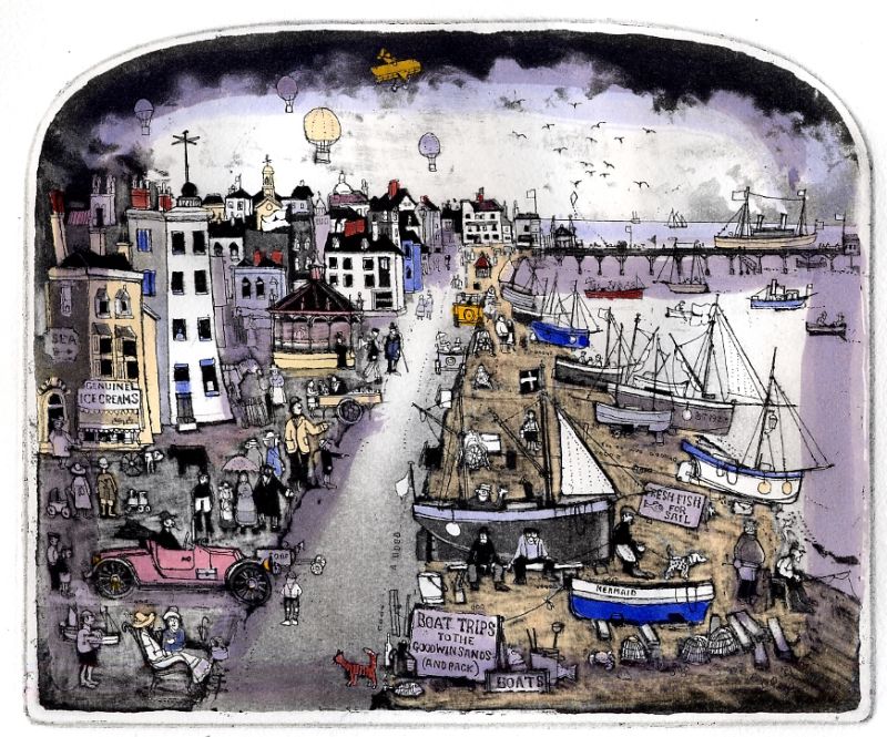 人々の暮らしをユーモラスに緻密に描き、何気ない日常の風景を手彩色で彩った彼の作品。登場人物の一人一人にストーリーを想像させ、思わず時間を忘れて見入ってしまいます。また、可愛らしく、時におもしろ可笑しく、我々の心をくすぐります。
