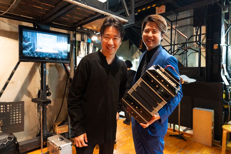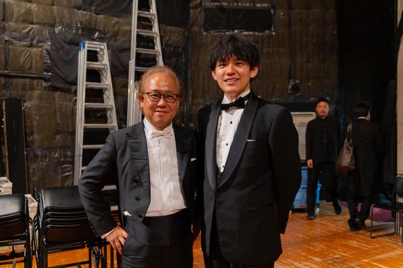 本番を終え、舞台袖にて川瀬賢太郎マエストロと。