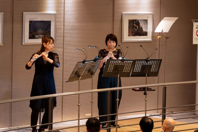 ロビーコンサートのフルートとオーボエの二重奏に、うっとりと耳を傾ける開演前のひととき。