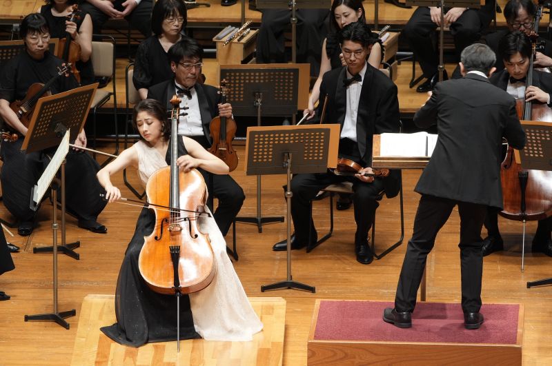 休憩をはさんで後半のステージに登場した鳥羽咲音が選んだのは、今年没後50周年のショスタコーヴィチ:チェロ協奏曲第1番。技巧的にはもちろん、この作品の持つ複雑で深遠な世界を表現するのはベテラン奏者にとっても至難の業ですが、鳥羽は気負いを感じさせない、しかし圧倒的な集中力とテクニックでこの難曲に切り込んでいきます。この作品ではホルンが重要なパートを受け持ちますが、こちらも素晴らしい演奏を聴かせてくれ、鳥羽を盛り立てます。ともすれば晦渋な作品と思わせる演奏も珍しくない中、彼女の若さでこの曲の魅力を引き出す能力は同年代の奏者中でも頭一つ抜け出していると言えるでしょう。情熱と知性を両立させた新時代の才能を感じさせてくれました。