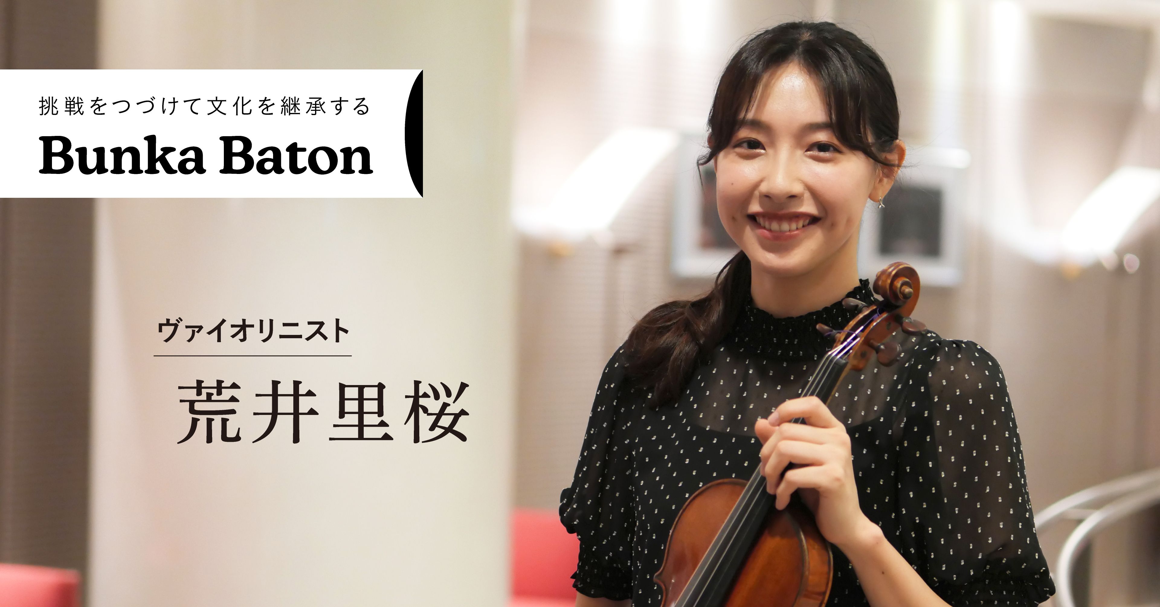 “文化の継承者”として次世代を担う気鋭のアーティストたちが登場し、それぞれの文化芸術に掛ける情熱や未来について語る「Bunka Baton」。今回は、人気と実力を兼ね備えたヴァイオリニストの荒井里桜さんをフィーチャーします。