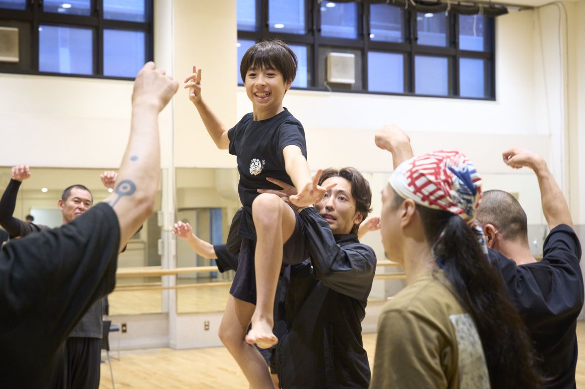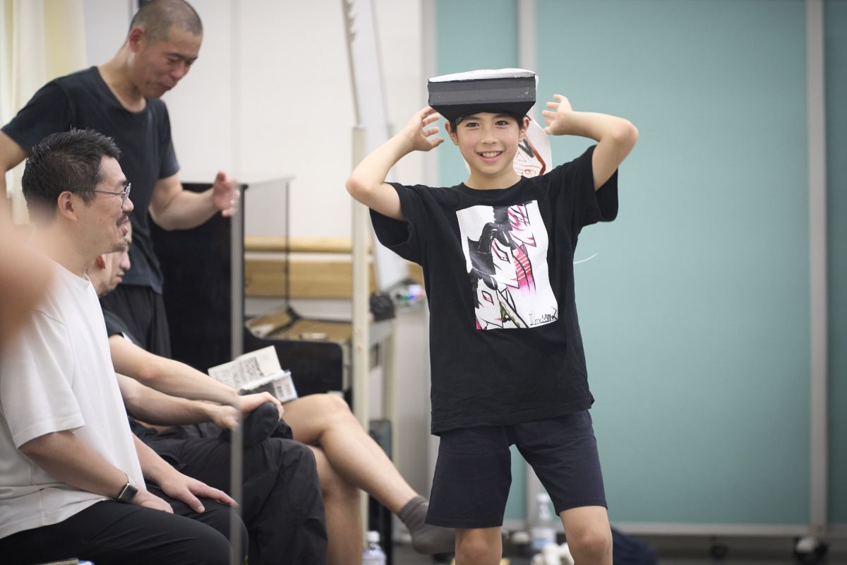 13歳の尾上眞秀。大人のダンサーや舞踏家に囲まれながら、どこか場の中心にいるように見える不思議な存在感があります。