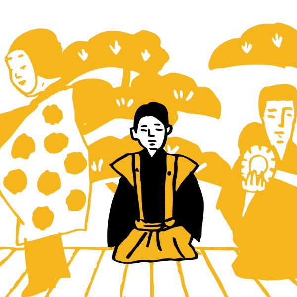歌舞伎や能楽では、役者の後ろから舞台の進行を見て、小道具の受け渡しや衣裳を整えるなど必要に応じて介添えする人がいます。このように役者の演技が滞りなく進むよう補助する役割を担う人を「後見」と呼びます(法律用語の「後見人」は、こうした伝統芸能における用語から派生した言葉です)。なお、歌舞伎では役者の子弟が、能楽ではシテ(主役)と同格かそれ以上の演者が後見を務めます。