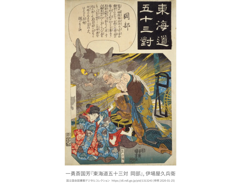 四世鶴屋南北は『東海道四谷怪談』で成功を収めた2年後の文政十年(1827)に、十返舎一九の『東海道中膝栗毛』に着想を得た『獨道中五十三驛』を初演。五十三次の宿場を舞台に主人公が京都から江戸へ目指していく物語を、南北は28もの場面を次々と切り替えながら、異なる複数の世界を混ぜる「綯い交ぜ」で表現しました。