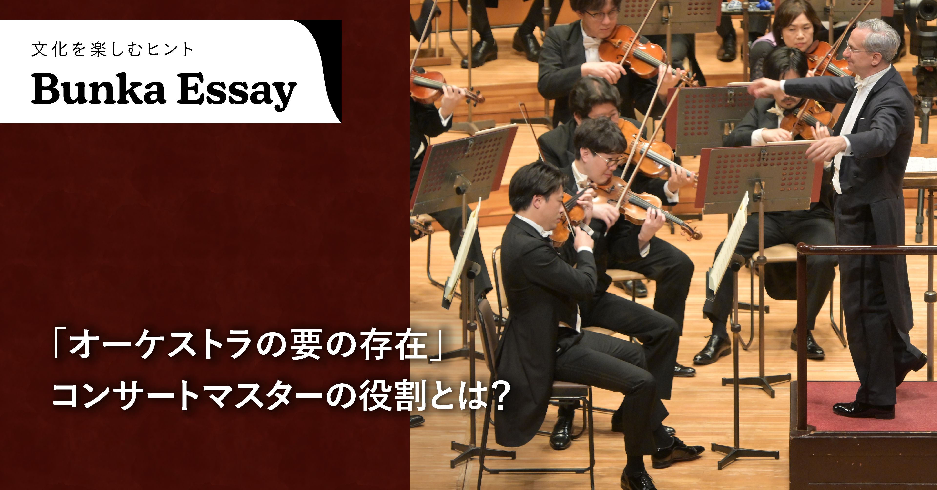 今度コンサートを鑑賞する際は、ぜひコンサートマスターの演奏や仕草にも注目してみてください。指揮者と100人近い奏者をつなぐ音楽的なコミュニケーションに触れたら、オーケストラが織りなすアンサンブルがきっとこれまで以上に豊かに感じられることでしょう。