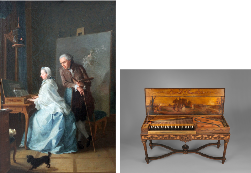 右)ハープシコード(1742年) ルイ・ベロ製 メトロポリタン美術館蔵