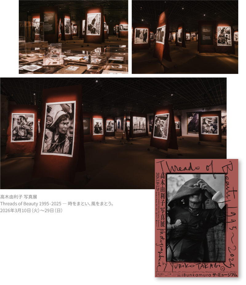 現在休館中のザ・ミュージアムは、2029年度竣工予定の東急百貨店本店跡地に建つ新施設へ拡大移転することが決定していて、現展示室での展覧会は2026年3月開催の『高木由利子 写真展 Threads of Beauty 1995-2025 ― 時をまとい、風をまとう。』が最後となります。本展では高木が伝統的な衣服をまとい生きる人々の日常を30年にわたり世界各地で撮影してきた〈Threads of Beauty〉シリーズを通じて、「ファッションとは何か」という問いをあらためて見つめ直します。また、過去にザ・ミュージアムが開催した展覧会のポスターをモニターでご紹介するなど、ザ・ミュージアムの歴史を振り返ることができる仕掛けも用意しますのでどうぞお見逃しなく!