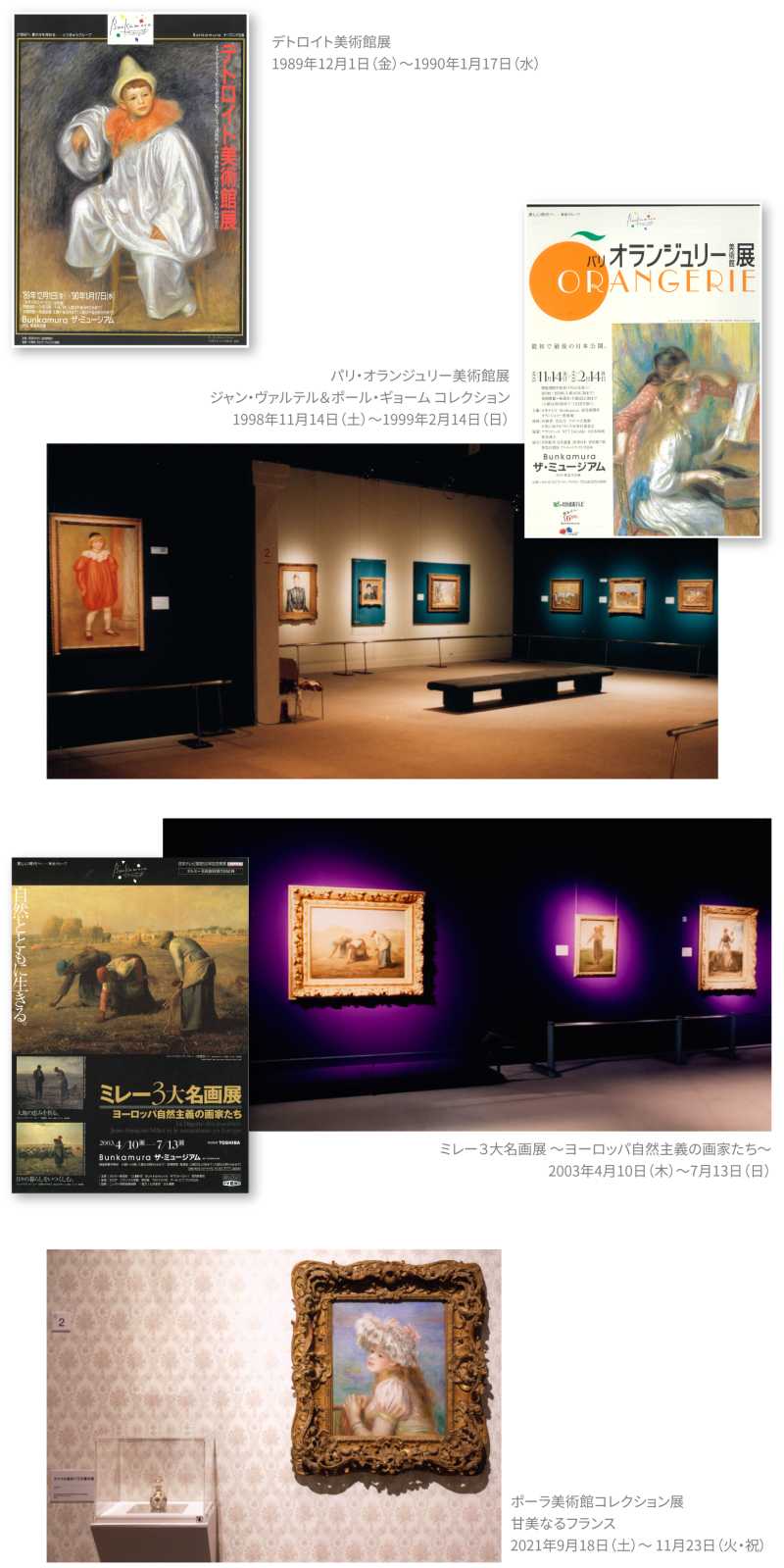 なかでも大きな反響を集めたのは、海外の著名な美術館の大規模コレクション展です。開館イヤーの1989年には全米五大美術館の一つに数えられるデトロイト美術館の西欧美術コレクションから約100点を厳選した『デトロイト美術館展』を開催し、ザ・ミュージアムのひとつの方向性として強く印象づけました。ほかにも、フランス印象派の作品を多数所蔵するオランジュリー美術館をクローズアップした『パリ・オランジュリー美術館展 ジャン・ヴァルテル&ポール・ギョームコレクション』(1998年)は、印象派を好む日本人にとりわけ人気の高いルノワールとセザンヌの作品をそれぞれ17点と14点も展示するという充実の構成。その華麗なる名作の競演を一目見ようと、ザ・ミュージアム歴代最多となる約45万人ものお客様が来場しました。