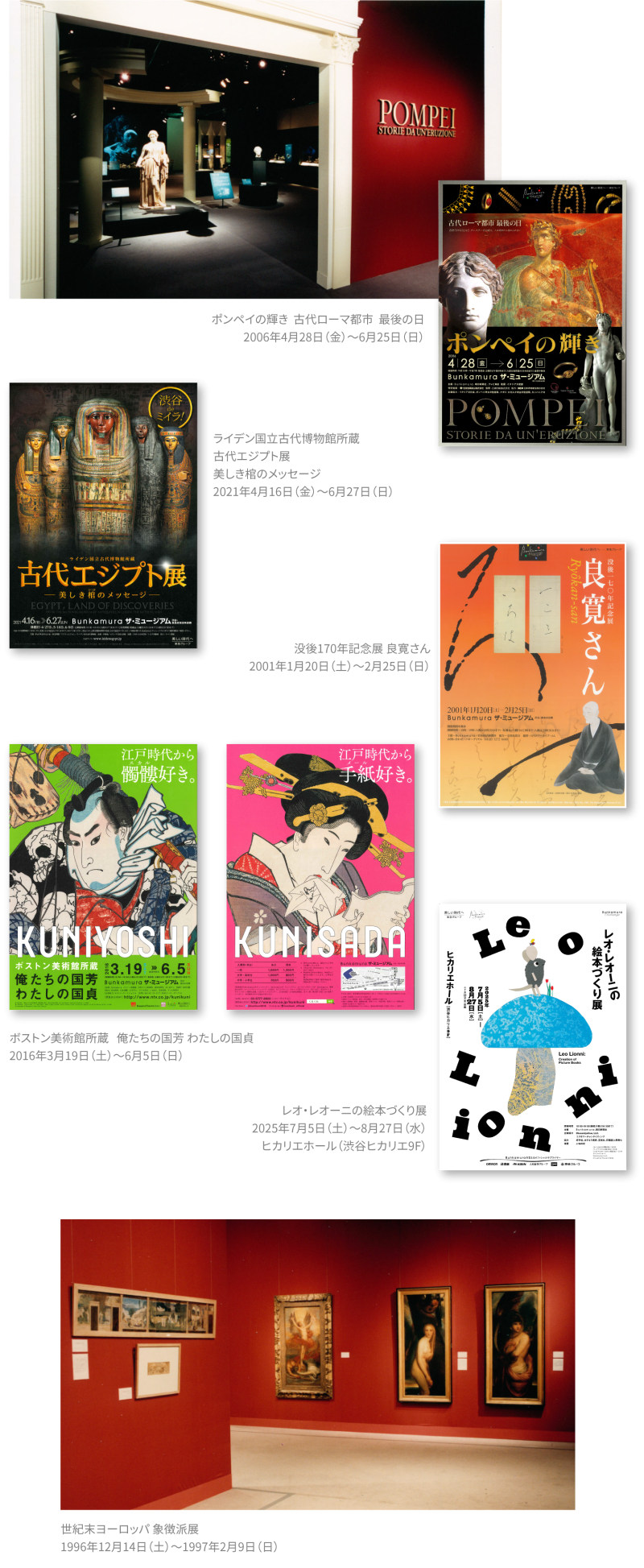 また、同じ趣向の企画が続かないよう、近代美術の系譜とは異なるジャンルの展覧会も意欲的に開催。『ポンペイの輝き 古代ローマ都市 最後の日』(2006年)や『ライデン国立古代博物館所蔵 古代エジプト展 美しき棺のメッセージ』(2021年)などの古代美術、『白隠展 HAKUIN 禅画に込めたメッセージ』(2012年)や『ボストン美術館所蔵 俺たちの国芳 わたしの国貞』(2016年)などの日本美術、さらには『スイスの絵本画家 クライドルフの世界』(2012年)のような絵本原画など、私立美術館ならではの自由かつ大胆なキュレーションで展示しました。