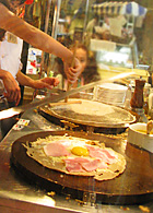 自分で作った一品は何よりもおいしいはず。そば粉の生地に卵を割って…小さなコックさんに変身!