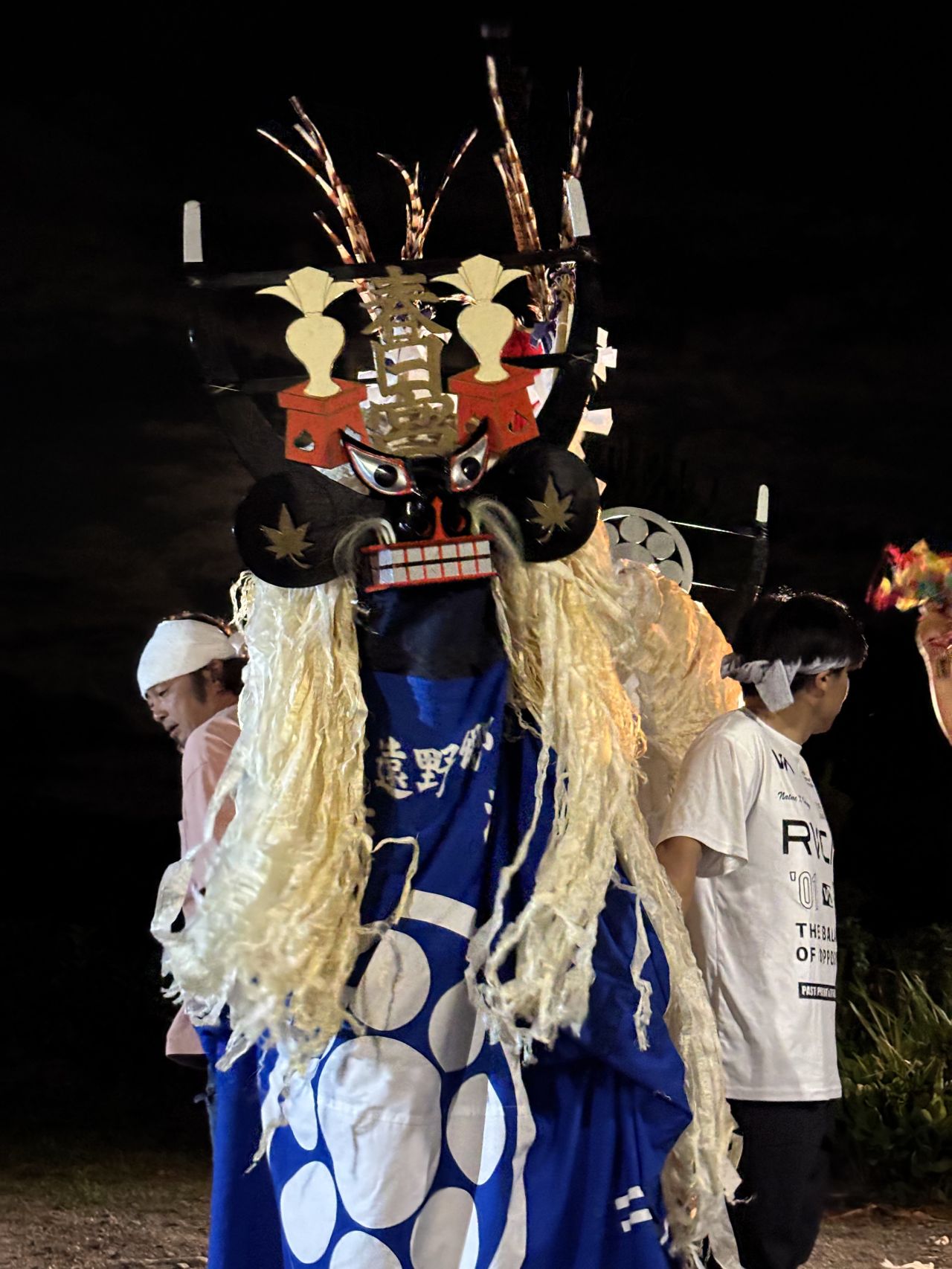 しし頭を被って踊る森山さん
