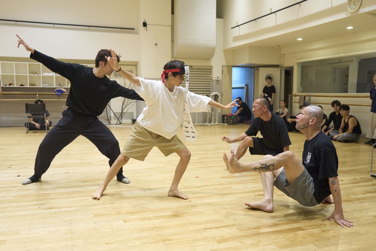 『踊る。遠野物語』リハーサルより。麿赤兒と対峙する少年Kを演じる 写真:渡邉肇