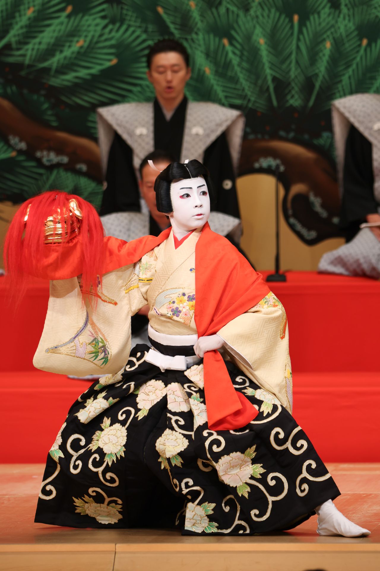 今年から中学生になった眞秀は、身長も伸びて、今時の若者らしく手足も長い。現代人から見れば理想的なプロポーションだが、腰を落として踊る歌舞伎舞踊においては不利であるように思われる。だが、昨年の歌舞伎舞踊『連獅子』では、仔獅子の精をダイナミックに生き生きと勤め、今年の『春興鏡獅子』では、可憐な胡蝶の精を品よく踊った。どちらも眞秀は腰をしっかり落として、背中をよく反り、舞踊の基本の心得をわきまえて踊っていたのが印象的だった。