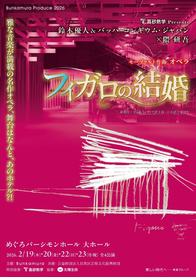 第1弾《魔笛》千住 博(2024年2月)、第2弾《ドン・ジョヴァンニ》杉本博司(2025年2月)に続き、今回《フィガロの結婚》を手掛ける世界的建築家・隈 研吾は、イタリア・ナポリのサン・カルロ歌劇場にて一度オペラの舞台美術を手掛けていますが、日本では初となり、注目必至。