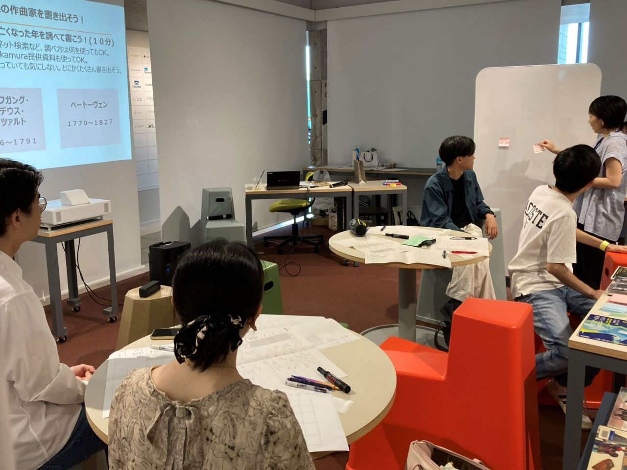 まずは、参加者全員で協力して“クラシック音楽の作曲家”を調べて、あげていきます。作曲家のエピソードに対する驚きや疑問も付け加えていくと、さらに活発な雰囲気に。「この話、本当?」といった声もあがります。