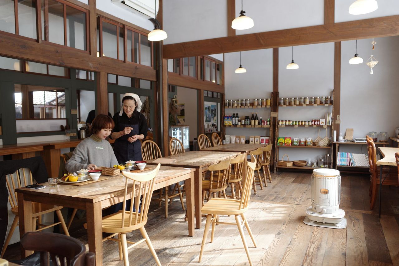 町の中心にある〈糧(かて)〉という施設は、津和野の中でも特徴的な場所です。元々病院だった建物を改装してレストランギャラリーを営むご夫婦は、仕事をきっかけに移住されたそうですが、多忙な日々で体調を崩してしまったそうです。地元の食に癒された経験から、”食の大切さを伝える場を作りたい”という想いでカフェを始めたとのこと。土日には地元でオーガニック野菜を育てるおばあちゃんがコース料理を振る舞ってくださるのだとか。