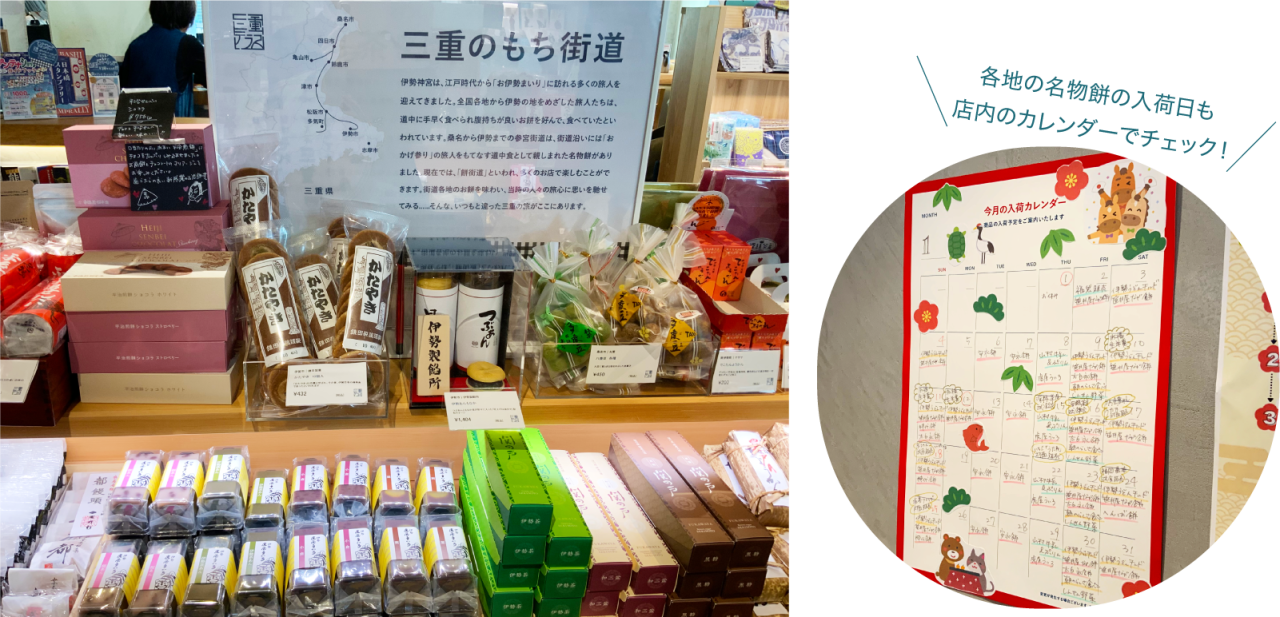 スタッフさんからおすすめされたユニークな売場が「三重のもち街道」。