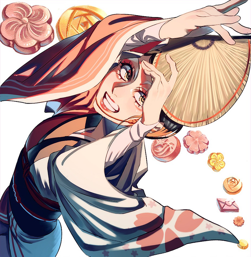 阿波踊りの動画を見ていたときに、踊っている女性の表情がステキだったので描きました。和三盆は美味しいからです。