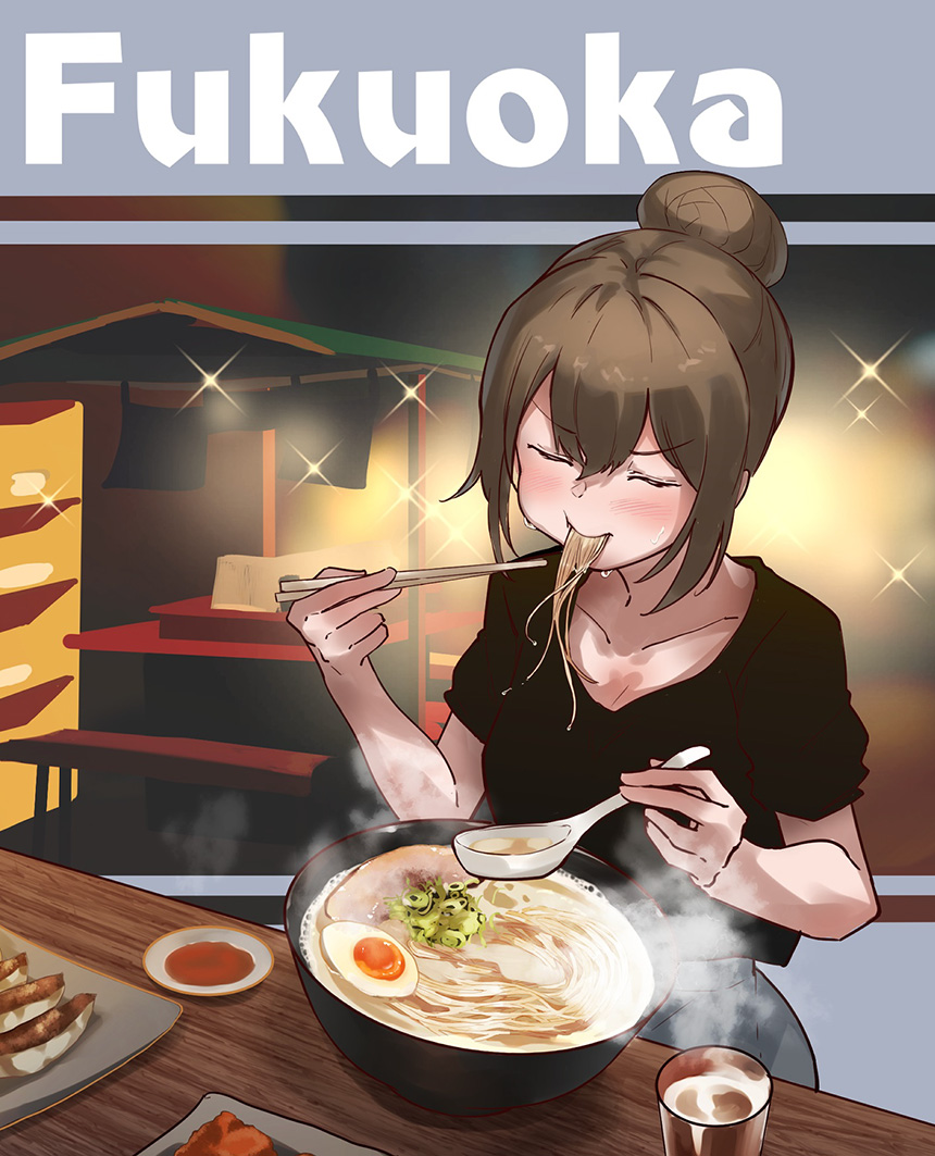 博多の豚骨ラーメンを食べている、食欲を刺激するイラストを意識しました。