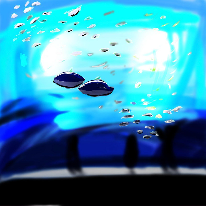 マリンワールドを描きました。小さい頃によく行った思い出を表現しました。