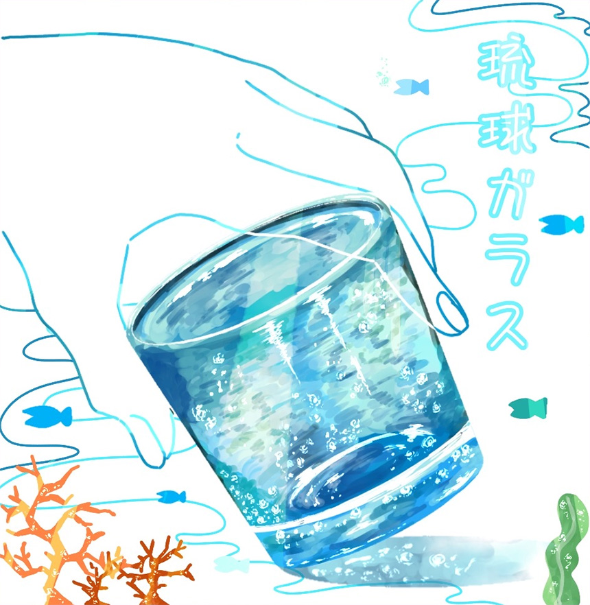 琉球ガラスにフォーカスさせた、このデザイン手法素晴らしいですね。制作意図にもあるように、気泡が魅力の琉球ガラスの気泡が美しく魅力的にマンガデザインされています。まさに沖縄の碧い海そのものです。