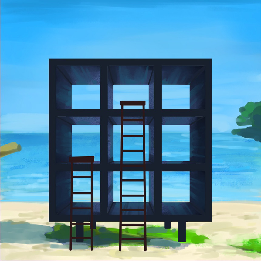 佐久島はいろいろな作品が置かれている島で、これは「おひるねハウス」という島一番のアートです。行ってみたいと思ったので描きました。