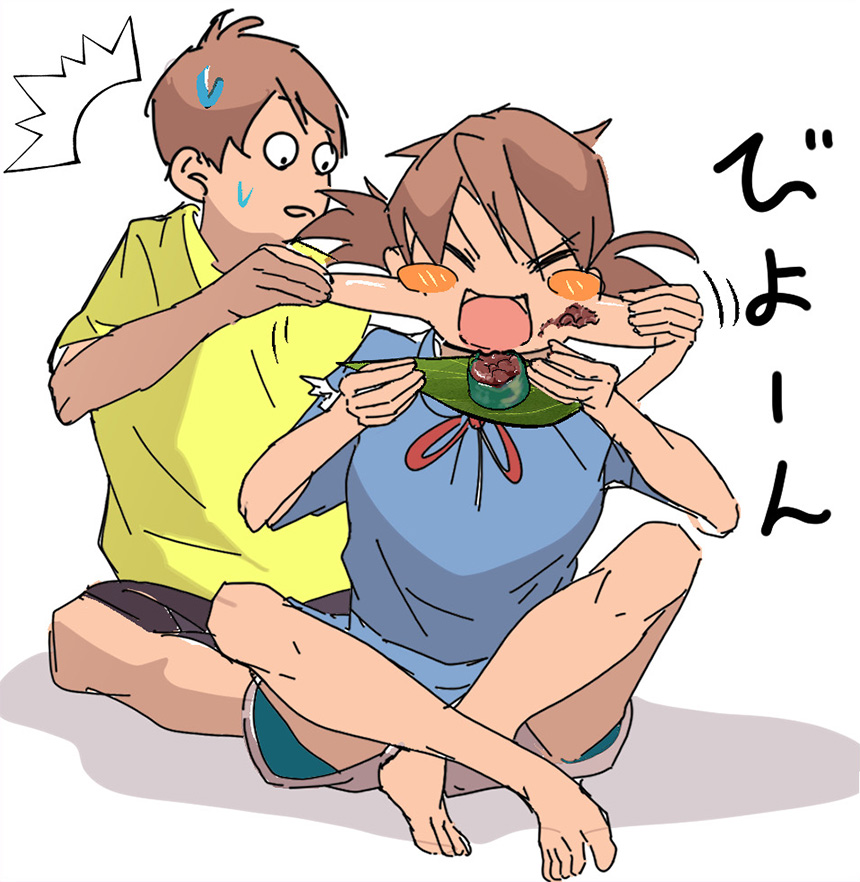 新潟県湯沢によくスキーに行きました。その度に必ず食べるのが笹団子。まさにほっぺが伸びちゃうくらい美味しい。固くなった笹団子を焼いて食べてもまたまた美味しい。子供の表情に癒されるマンガデザインです。