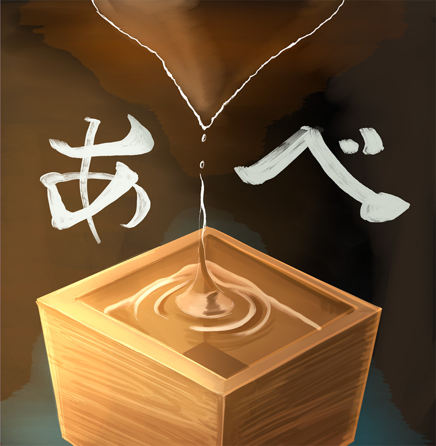 上にある米から日本酒になっていくイメージで描きました。「あべ」は米の味を大切にするようなので、そのために米の描写を入れました。