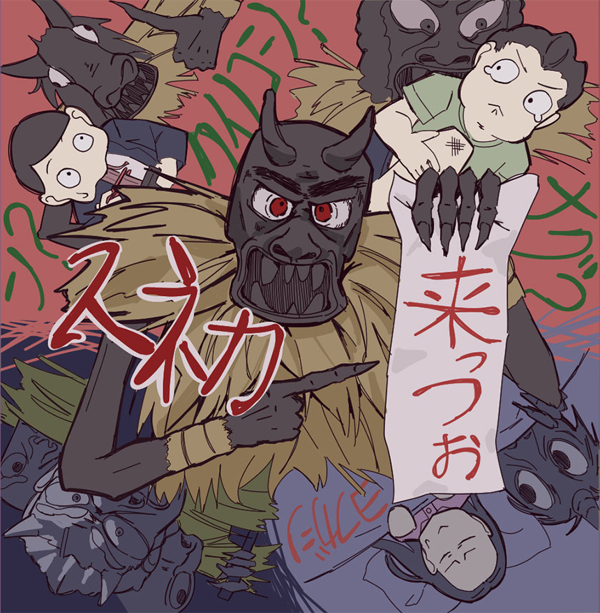子どもたちのびっくりした表情がこの不思議な行事を表していますね。「吉浜(よしはま)のスネカ」は、岩手県大船渡市三陸町吉浜で、毎年1月15日に行われる恒例行事。奇怪な面をかぶったスネカが地区の家々を回り、子供の健やかな成長と五穀豊穣、豊漁を願います。2018年11月29日、「吉浜のスネカ」を含む「来訪神:仮面・仮装の神々」がユネスコ無形文化遺産に登録されました。