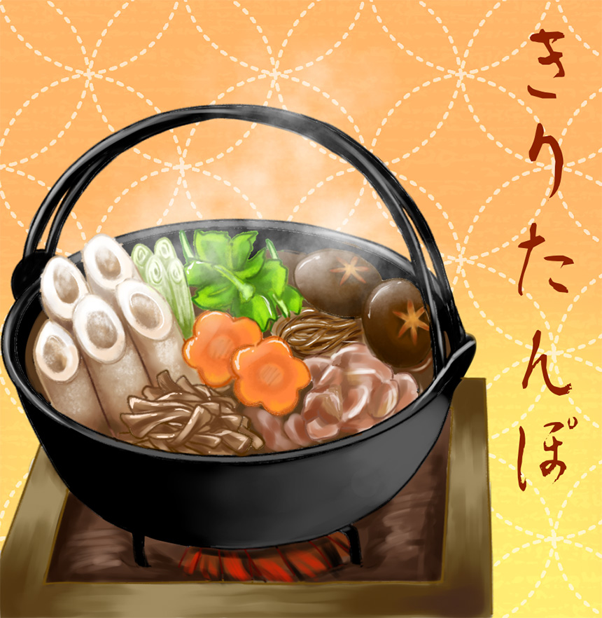 「食のデザイン」が上手にできています。秋田といえば、『きりたんぽ鍋』。僕も大好きなのでとても同調します。背景デザインも郷土の色が出ていてとても素晴らしいです。バランスのとれた良い作品ですね。