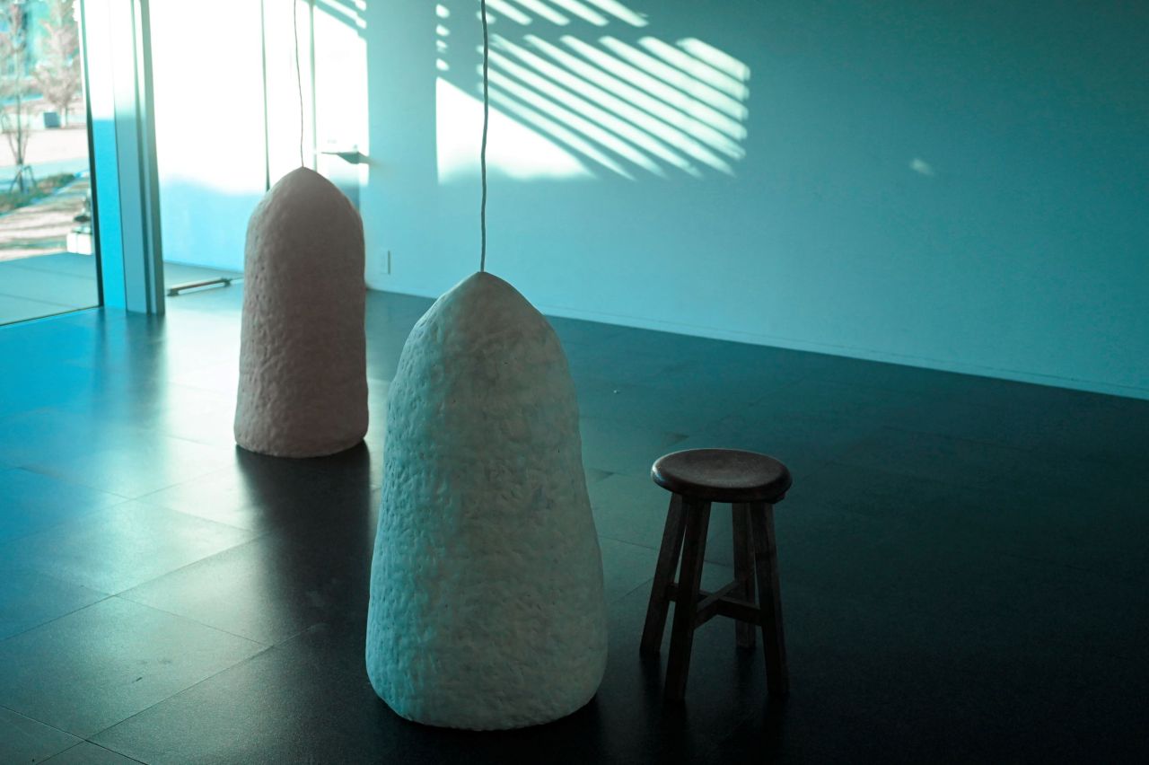 訪れた時に展示されていた作品は、抱きしめるとほんのり温かさを感じる彫刻。そっと耳を当ててみると中から小さく音が聞こえてきました。その意外性に、思わずはっとさせられます。