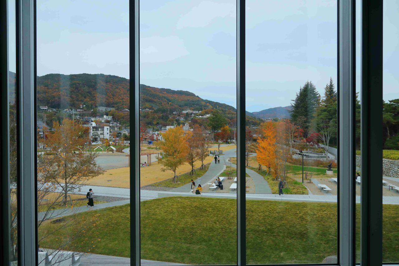 充実感を胸に外に出ると、屋上広場[風テラス]から象徴的な善光寺とその周りを取り囲む町並みが目に飛び込んできました。その風格に圧倒されながらも、改めてこの場所に「長野県立美術館」があることの意味が感じられてきます。