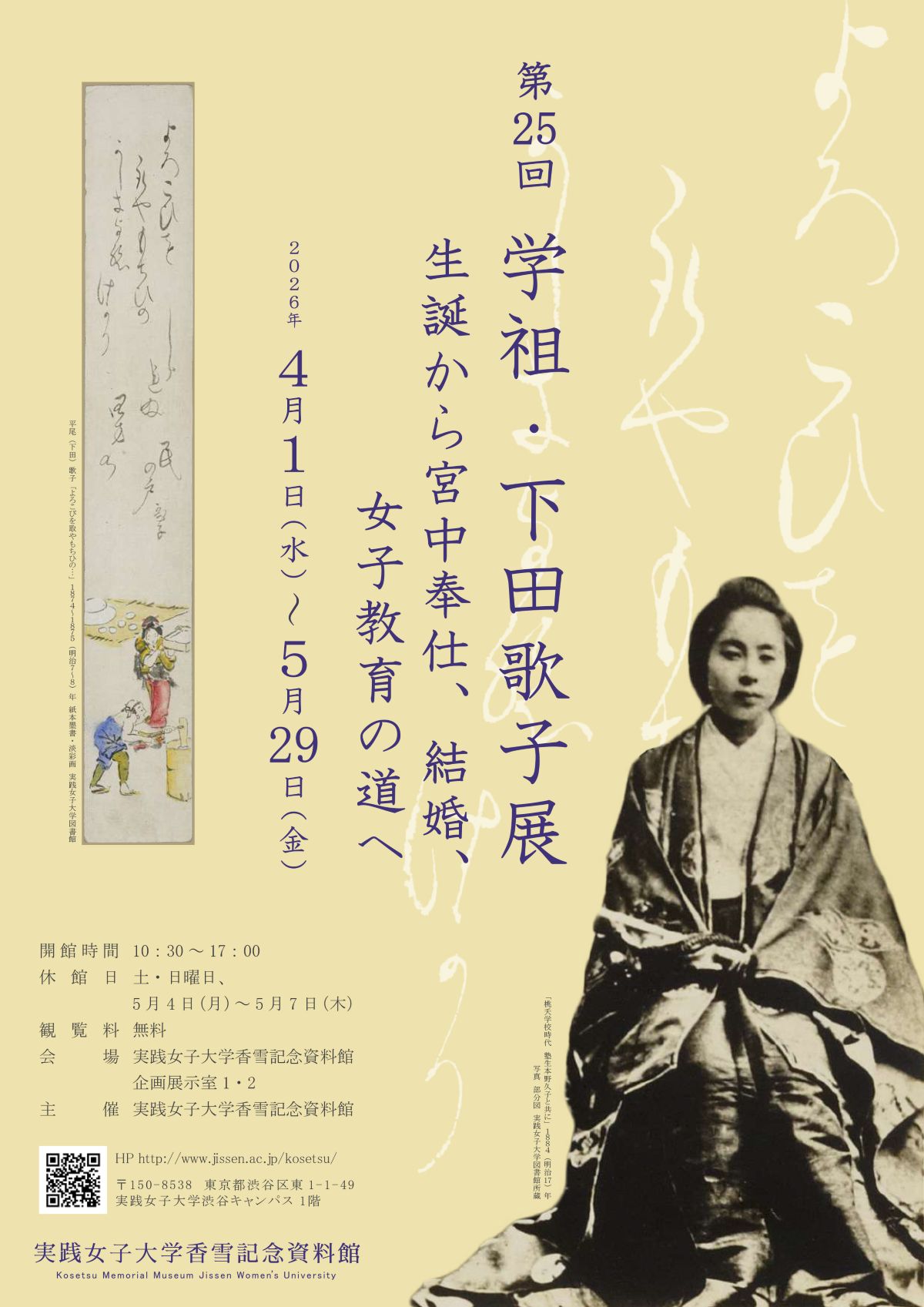 ※やむを得ず会期や開館時間を変更する場合があります。最新情報は実践女子大学香雪記念資料館ホームページをご確認ください。