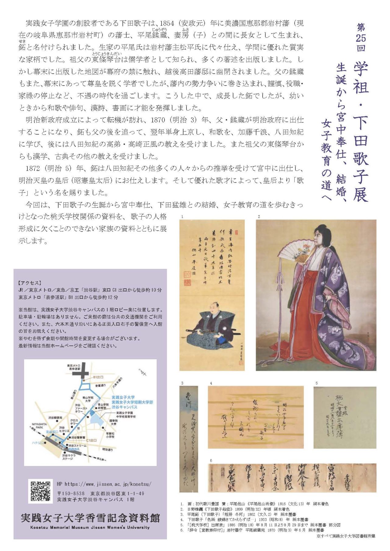 ■企画展示室「第25回 学祖・下田歌子展 生誕から宮中奉仕、結婚、女子教育の道へ」